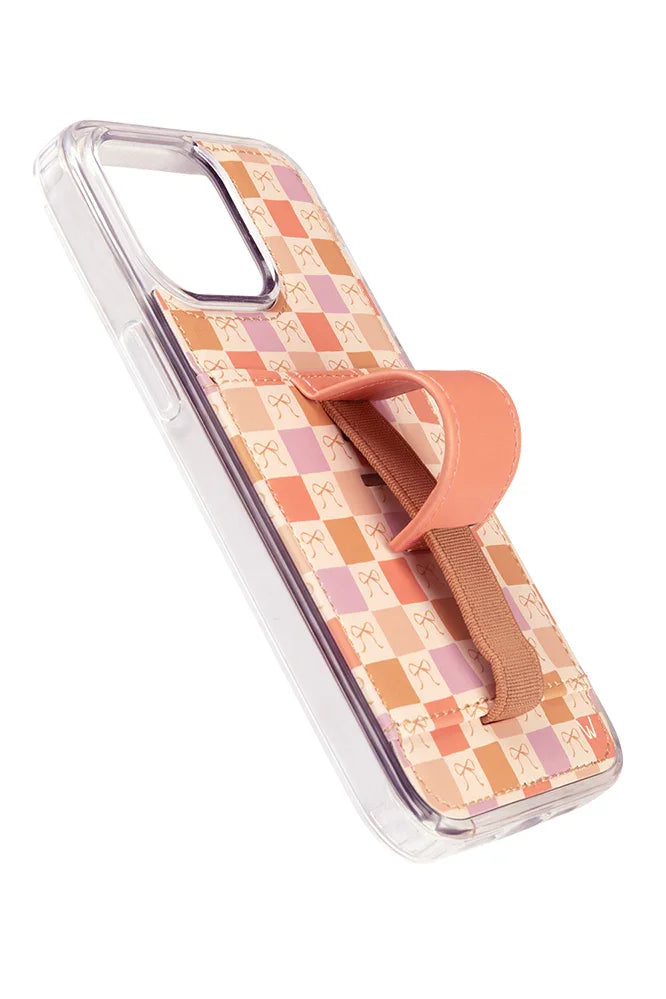 Case Design: Pastel pink, purple and brown checker pattern with brown bows