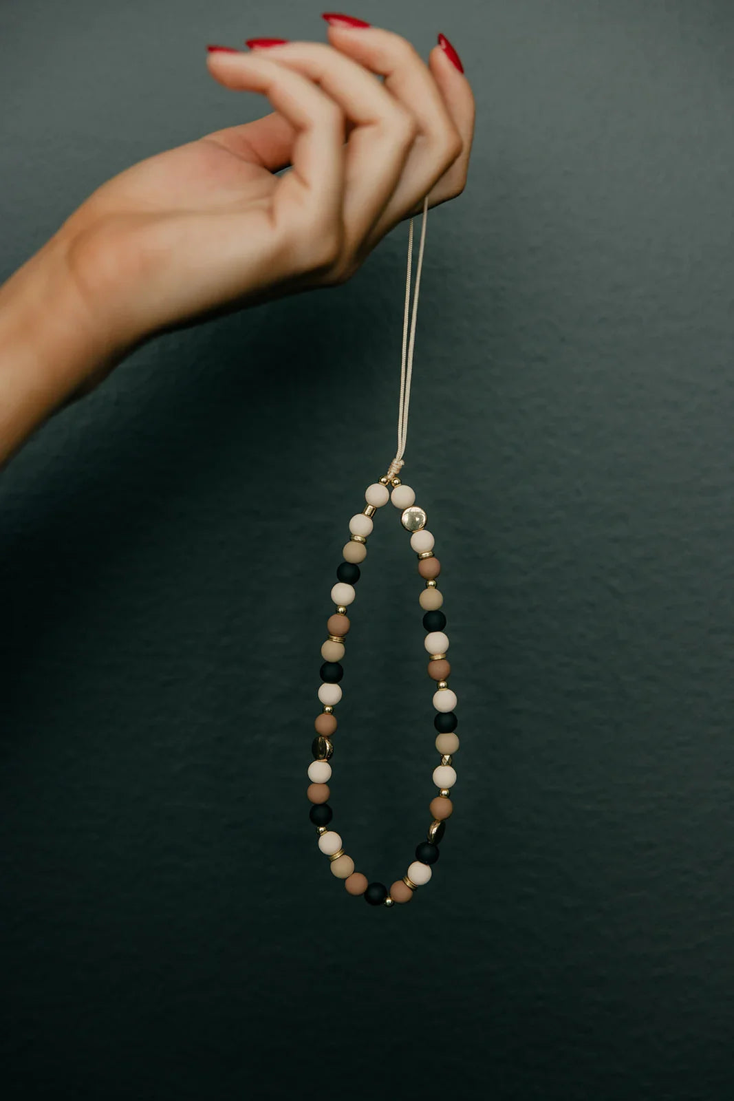 Add this neutral beaded wristlet to your Walli Case for hands-free carrying!